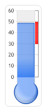 Demonstrates a vertical thermometer gauge with an axis marker.