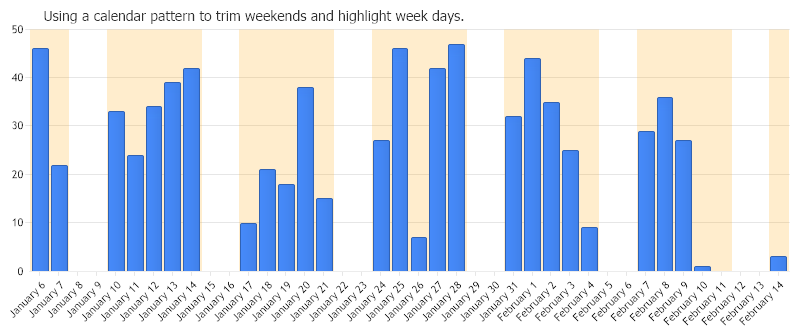 How a calendar pattern can be used to trim data and highlight chart area sections.