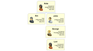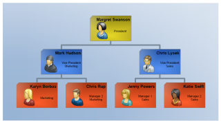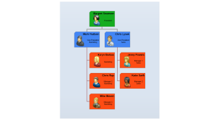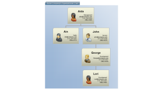 Demonstrates a manually populated organization chart where the last level is listed vertically due to image size constraints.