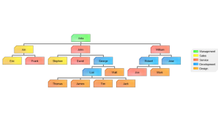 Demonstrates manually adding attributes to draw organizational nodes differently.