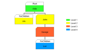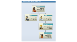 Demonstrates usage of an organizational chart using custom attributes populated from an existing user table by adding instance and parent IDs to establish the org hierarchy.