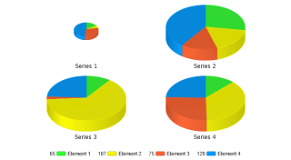 Demonstrates specifying a static size for a single pie amongst multiple pies.