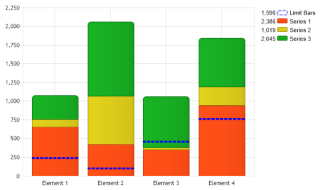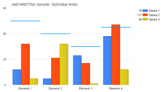Demonstrates using subvalues to draw limit lines above a group of bars.