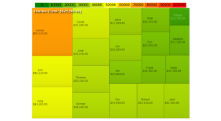 Demonstrates how to draw a simple TreeMap chart with color ranges using a SmartPalette.