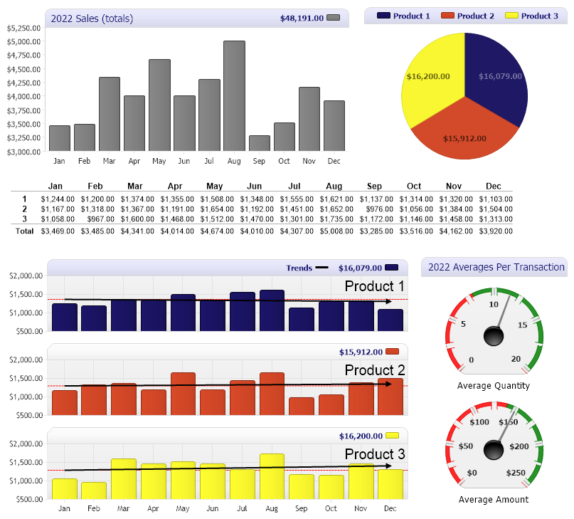 // Demonstrates a database driven digital dashboards utilizing a number of chart types.