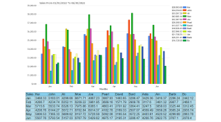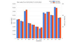 Demonstrates data grouping by years with a custom start month of year selected.