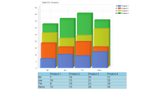 Displays a tabular chart data in a custom datagrid along with the chart image.
