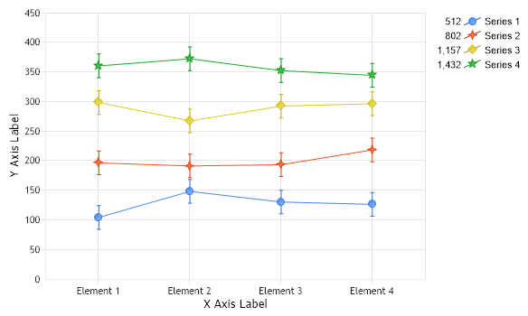 Lines with error bars.