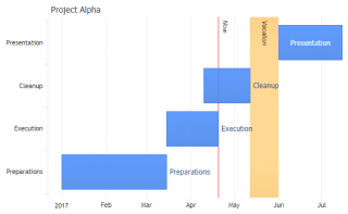 Demonstrates a simple Gantt chart with JSCharting.