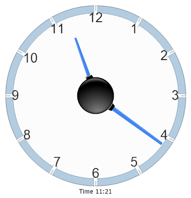 Demonstrates a gauge chart created to look like a clock and displaying current server time.