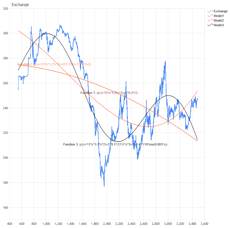 ' the functions are fit is a set of data which represents a FX exchange rate over a given