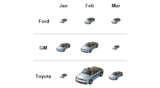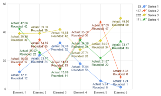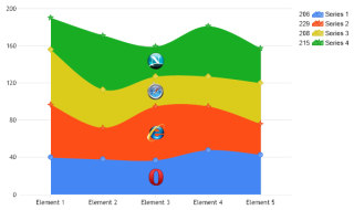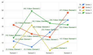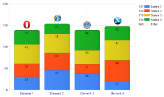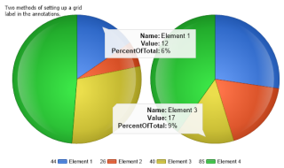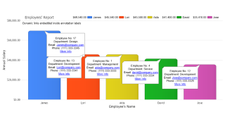 Demonstrates template usage in elements and tick marks along with tool tips and drilldown.