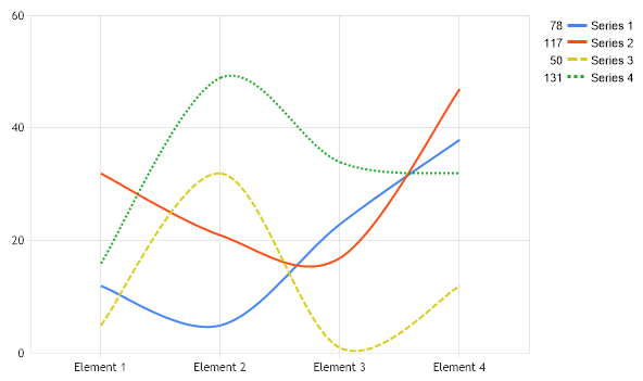Demonstrates how to make spline legend entries reflect the line style in the legend box.
