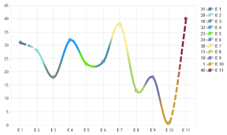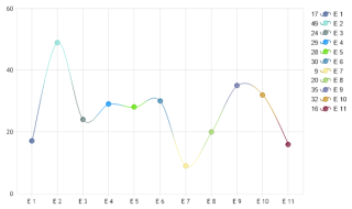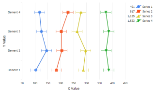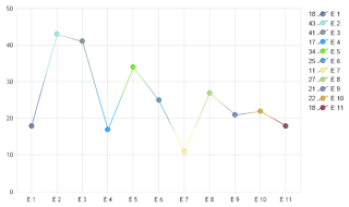 Demonstrates a dumbbell slider chart with styled lines that encompass element markers. Uses firstPoint and lastPoint to manage styling.