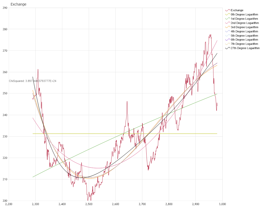 Demonstrates the use of GeneralLinear forecasting engine in order to find the function of best fit from three functions spaces.