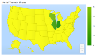 Demonstrates a thematic map with only select elements being counted.Chart.