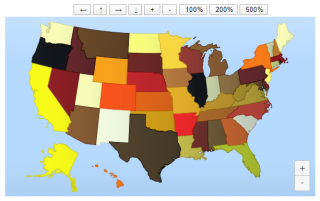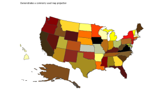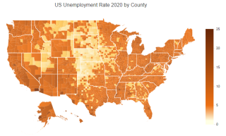 Demonstrates how to use external topoJSON and data files to generate a US counties choropleth map.