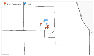 Demonstrates adding points of interest icons onto a map based on GPS coordinates.