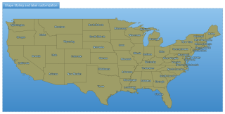 Demonstrates a map labeling feature that does not allow multiple labels a single country with multiple areas (Compare to MapLabelOptions)