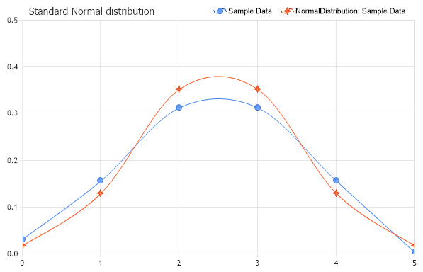 Demonstrates the use of NormalDistribution method from the StatisticalEngine. This method return the normal distribution for a series when the standard deviation is known. The mean is calculated using the arithmetic mean of the XValues of the given series.
