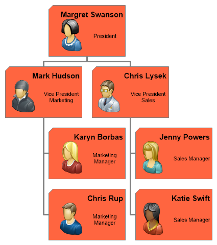 // Demonstrates an organizational chart with vertical layout of elements due to space constraints.