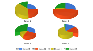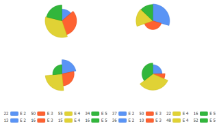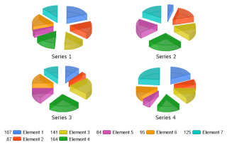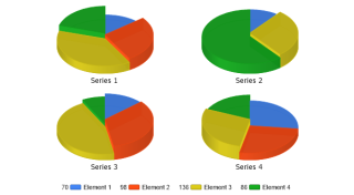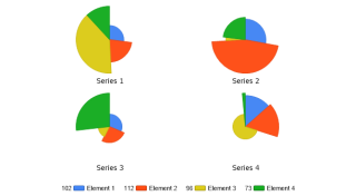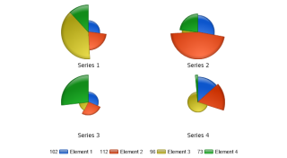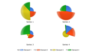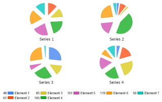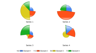 Demonstrates a multiple pies charts with slice lengths.