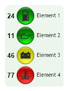Demonstrates gauge indicator lights with shading effect mode five and overlaid markers.