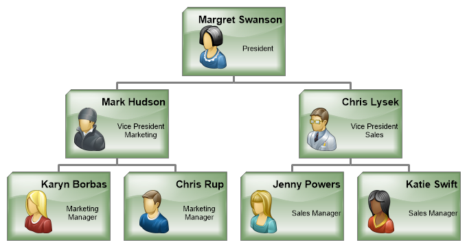 Demonstrates an organizational chart with ShadingEffectMode four.