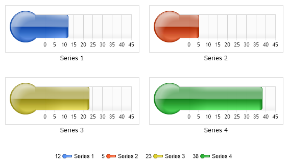 Demonstrates linear horizontal thermometers with shading effect mode two.