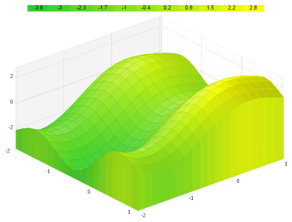 Demonstrates a 3D surface chart with DrawToFloor and different swatch.