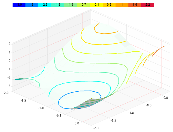 Demonstrates a 3D contour surface chart with a solid contour fill.