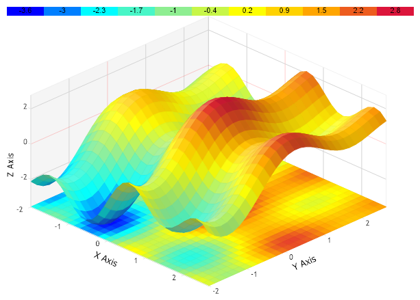 Demonstrates a 2D surface chart with contour lines and a 2d surface layer.