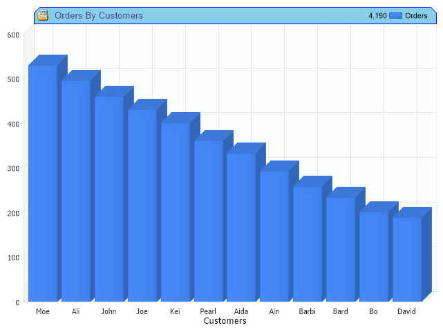 Chart.Series.SqlStatement= "SELECT Name,Sum(1) FROM Orders GROUP BY Name ORDER BY Sum(1) DESC"