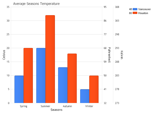 Demonstrates using the built in axis calculation to convert units and add multiple temperature axis.